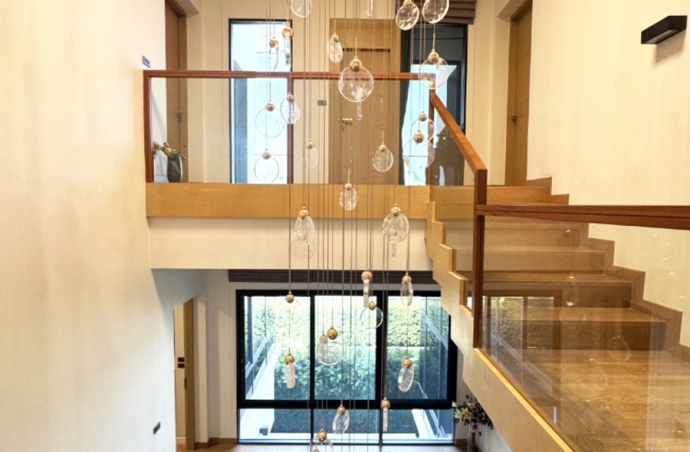 - โถงบันไดขนาดใหญ่ สูงโปร่ง พร้อมไฟช่อกลาง ขนาดใหญ่