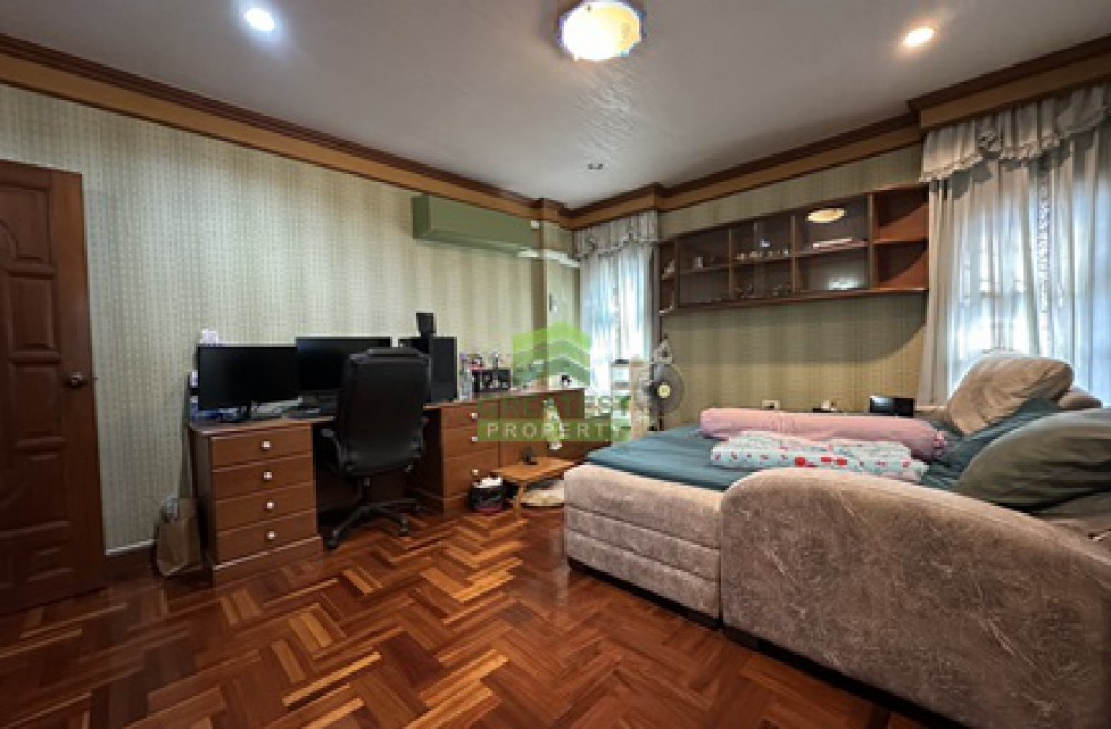 ประเภททรัพย์สิน : บ้านเดี่ยว 2 ชั้น มี 4 ห้องนอน, 2 ห้องน้ำ, 1 ห้องครัว, 1 ห้องพระ, 1 ห้องนั่งเล่น, 1 ห้องทำงาน, 1 ห้องเก็บของ, 4 แอร์, 2 ที่จอดรถ