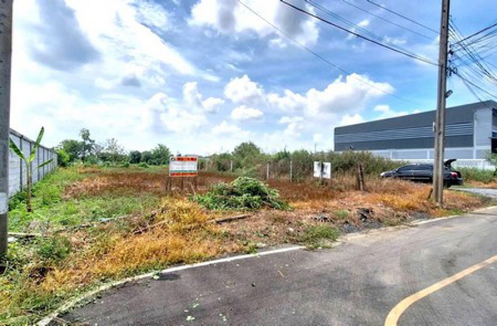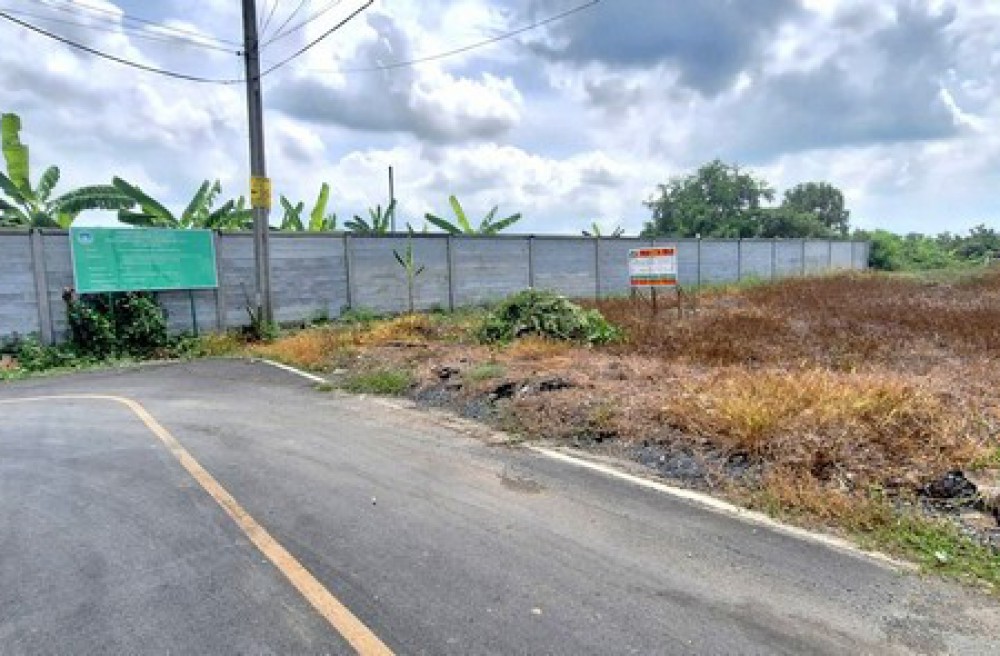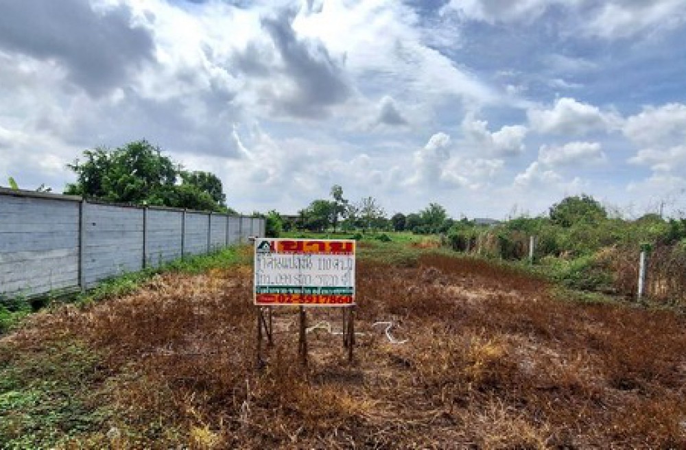 ที่ดินเปล่า เนื้อที่ 110 ตารางวา เป็นที่ดินแปลงมุม ทำการถมที่แล้ว หน้ากว้างประมาณ 13 เมตร ลึกประมาณ 34 เมตร
