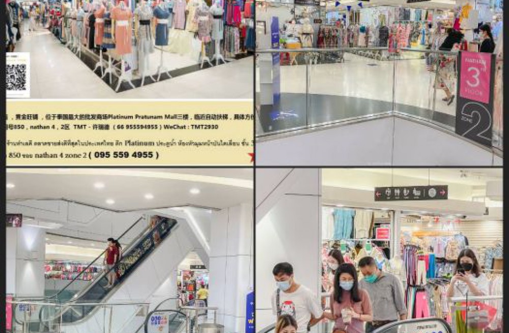 位于泰国最大批发商场——Platinum Pratunam Mall 三楼,靠近自动扶梯,位置优越,人流量大。