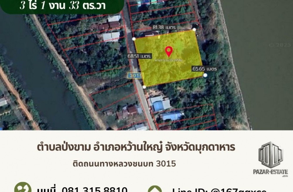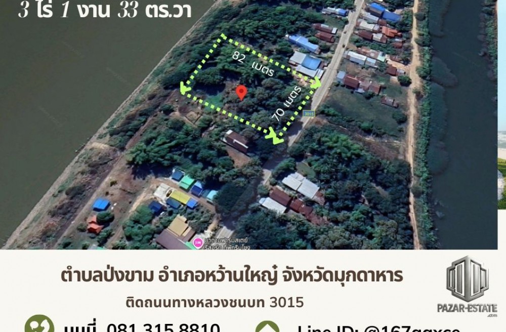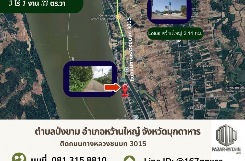 หว้านใหญ่ , จังหวัดมุกดาหารPZ1255 ขายที่ดินติดแม่น้ำโขง 3 ไร่ 1 งาน 33 ตรว.