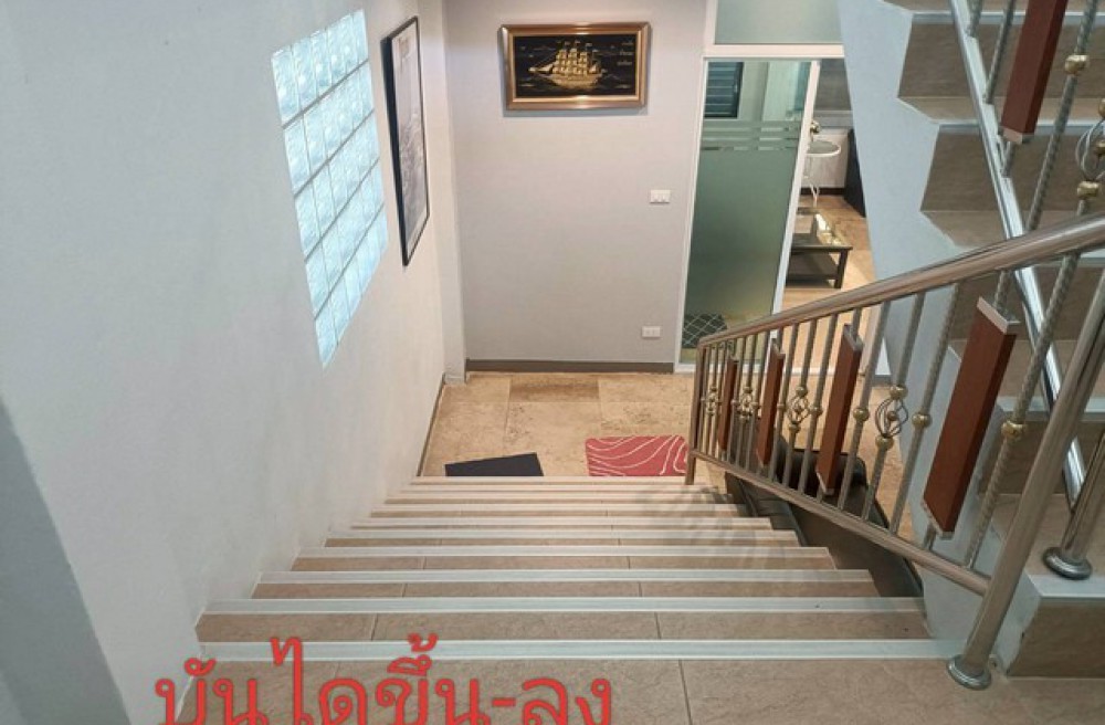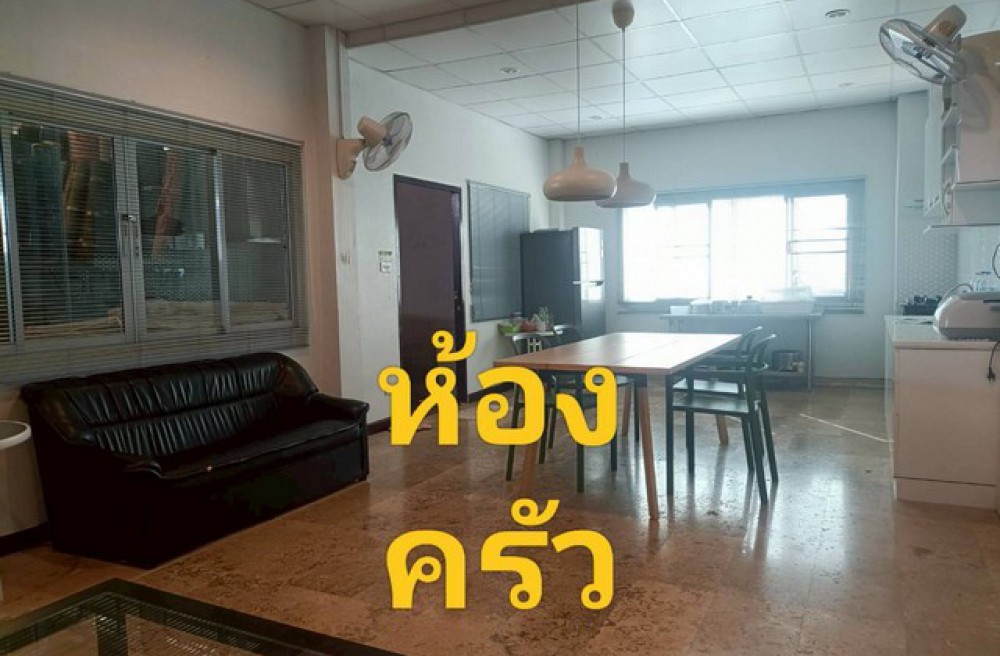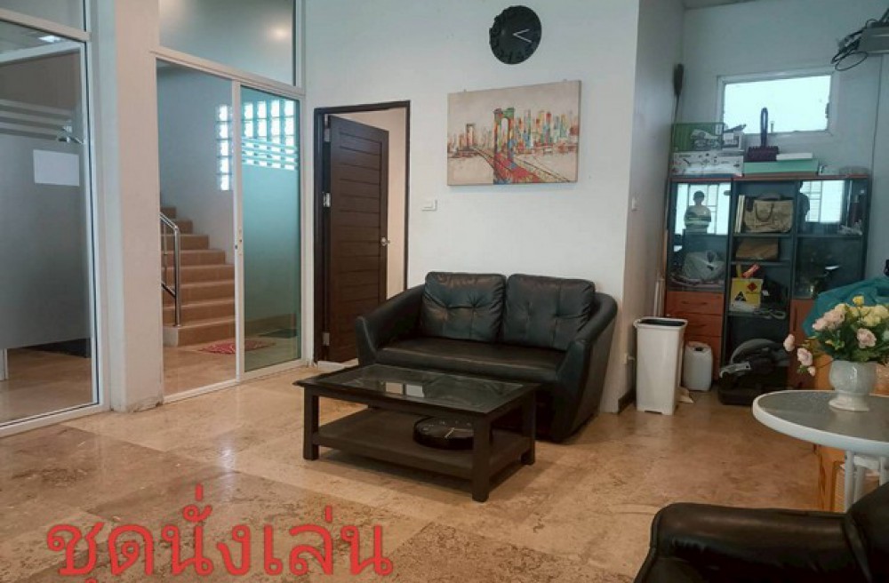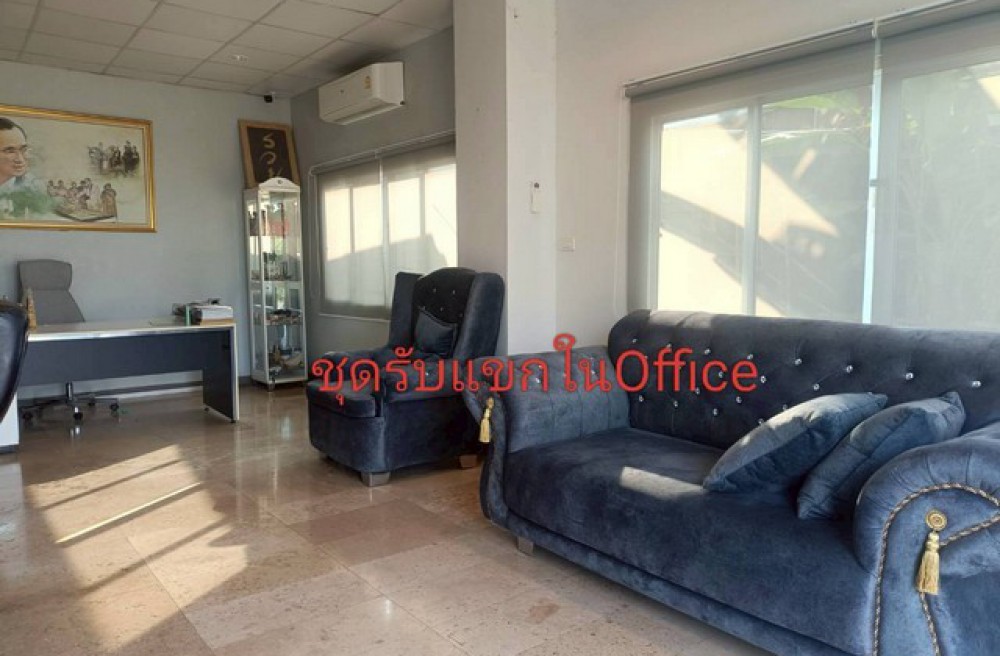ชั้นล่างเป็นออฟฟิศ แอร์ 2 ตัว ห้องครัวไทยบิ้วอิน ประตูด้านหลังเปิดออกไปด้านโกดังเก็บสินค้าได้