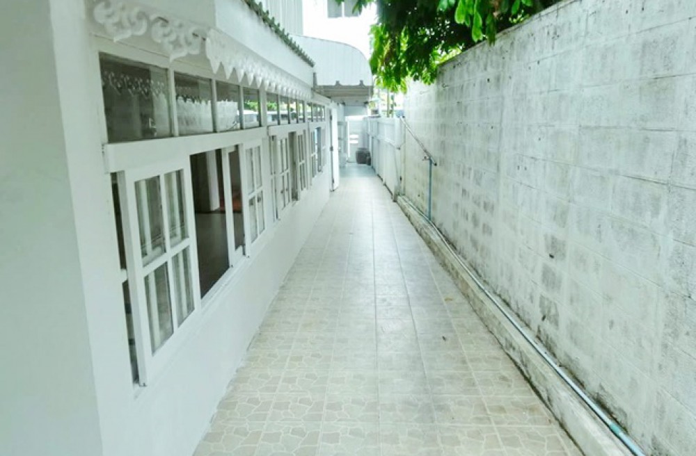 5bed MRT BangYiKhan 2km. TangHuaSeng 750m. Sirindhorn Rd. For rent Large 2-story detached house 127 sq.wa. 380 sq.m. spacious area Suan Dusit University 400 m. Newly renovated unfurnished shady suitable for home office 3 bath 35,999 B-M. BangPhlat Convenient access via