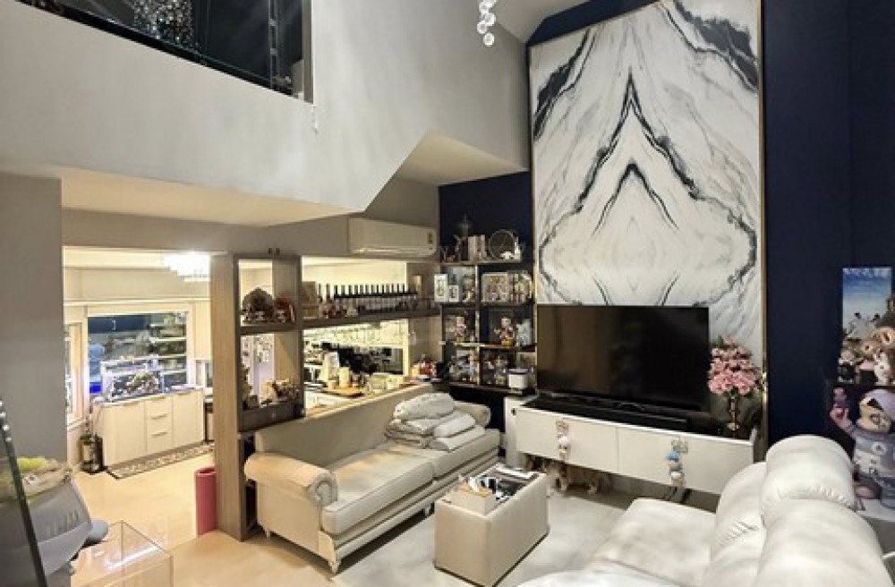 - ชั้นแรกเป็นส่วนของห้องนั่งเล่น เพดานDouble volume, ห้องทานข้าว, ครัวไทย