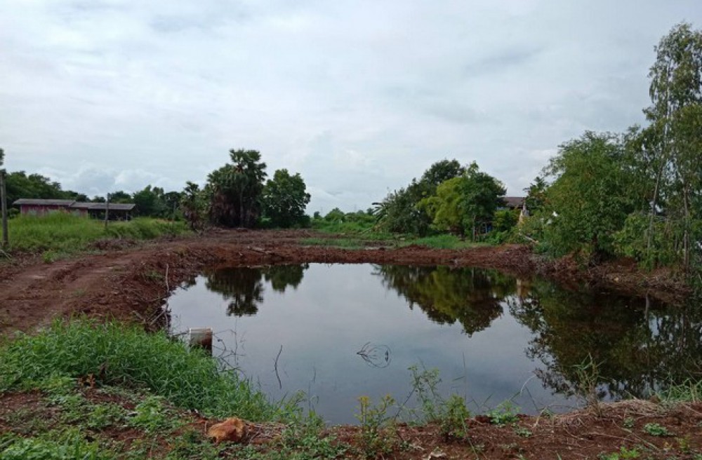 ส่วนด้านหน้าที่ดินปัจจุบันเป็นท้องร่องสวน ปลูกยูคาลิปตัส ส่วนด้านหลังเป็นบ่อเลี้ยงปลา ความลึกประมาณ 1 ถึง 1.2 เมตร
