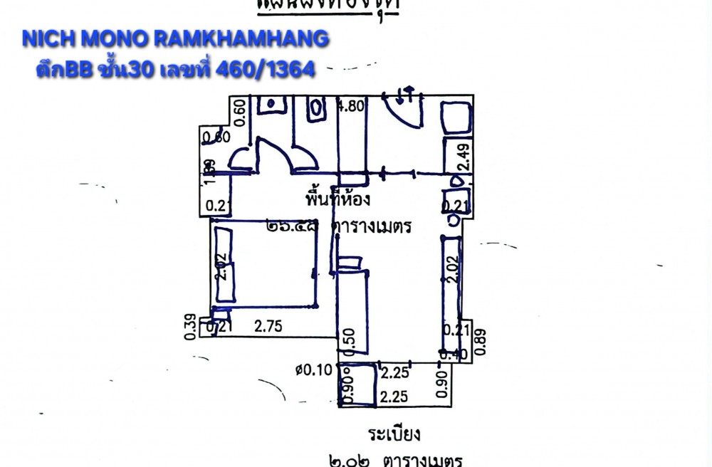 คอนโด นิชโมโน รามคำแหง ตึกBB ชั้น30 ห้องชุดเลขที่ 460/1364