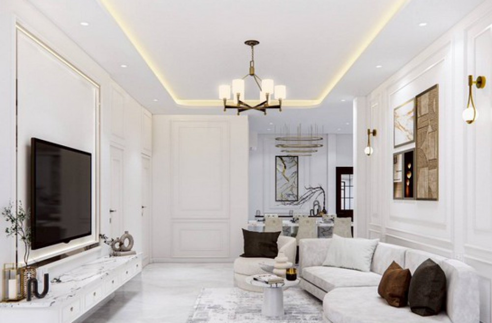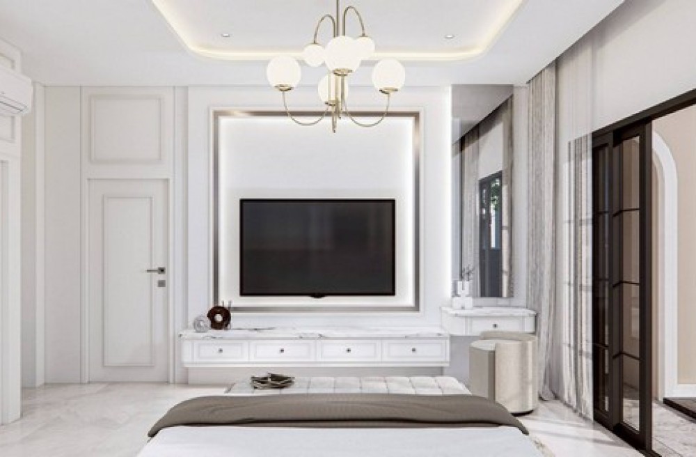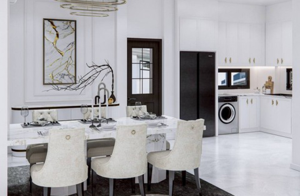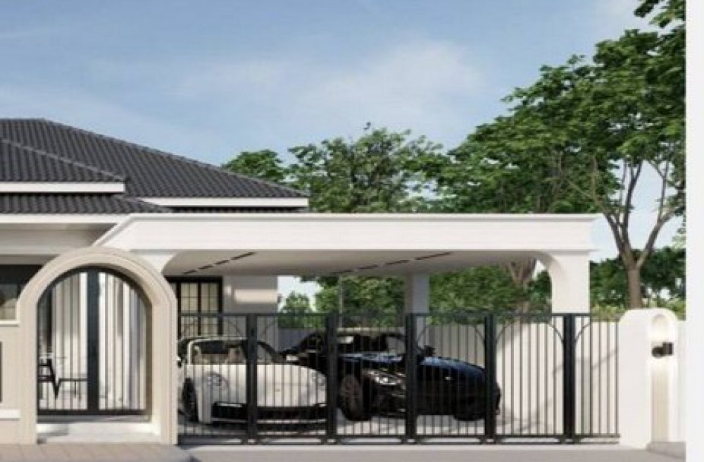 บ้านเดี่ยวชั้นเดียว สไตล์โมเดิร์นคลาสสิก (Modern Classic ) ฝ้าเพดานโปร่งโล่ง ขนาดที่ดิน 76 ตารางวา 3 ห้องนอน 4 ห้องน้ำ