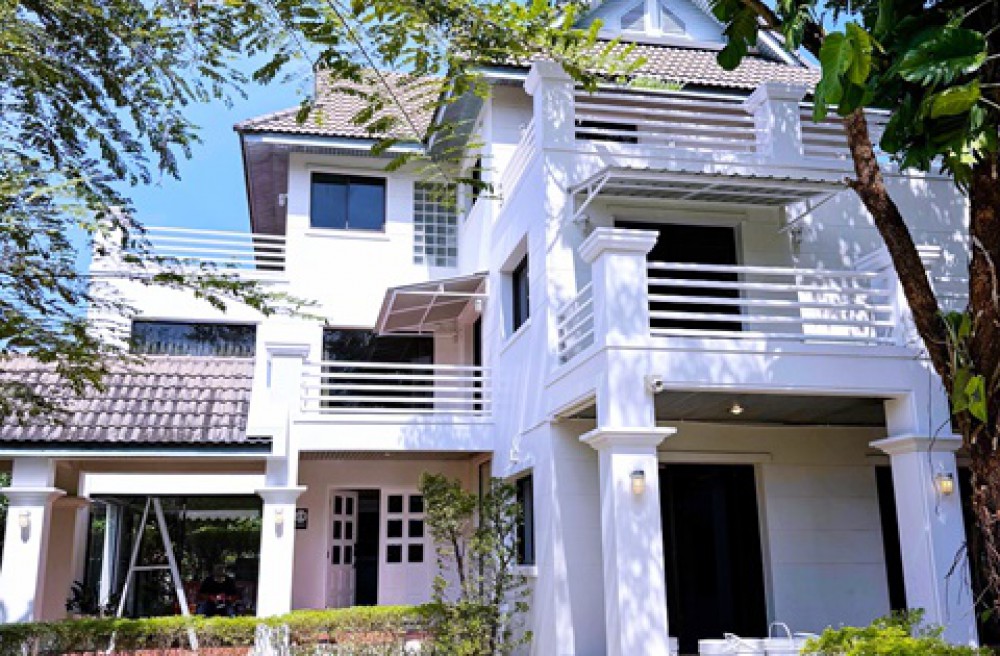 Soi SeriThai 51-61 Chocolate Ville 2.1km. 4bed3-story pool villa for rent 200sq.wah (1,200 sq.m) 64,999baht per month. 3bath with jacuzzi. Ramintra 18-hole golf course Praserthmanukit Road NIDA.