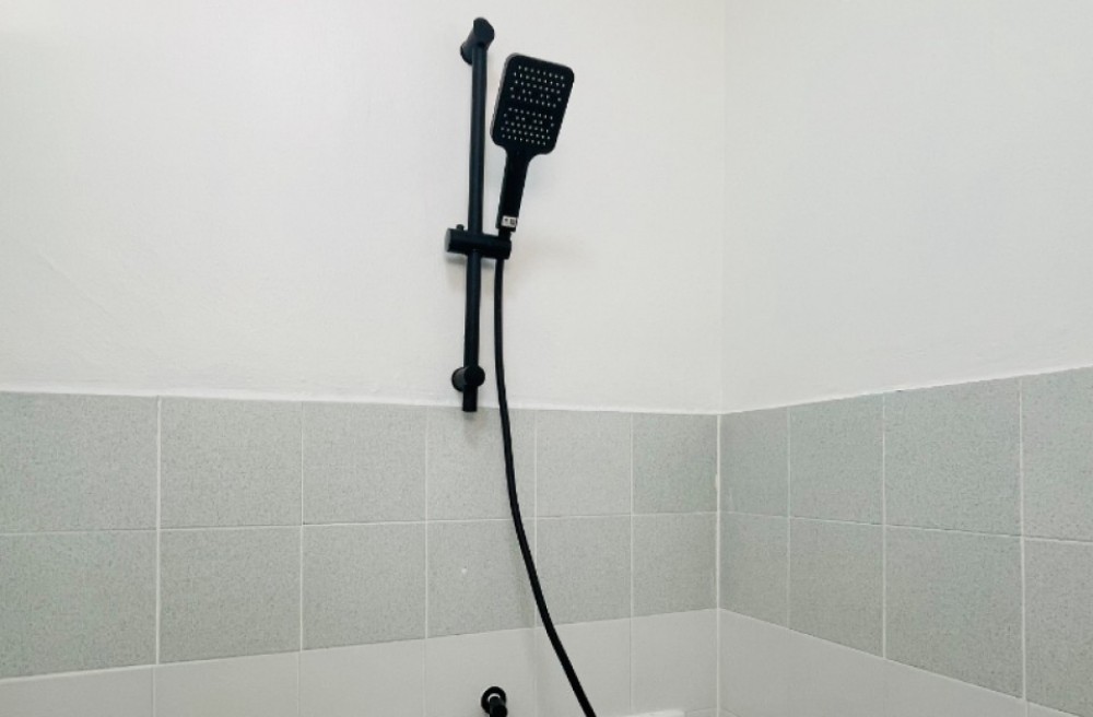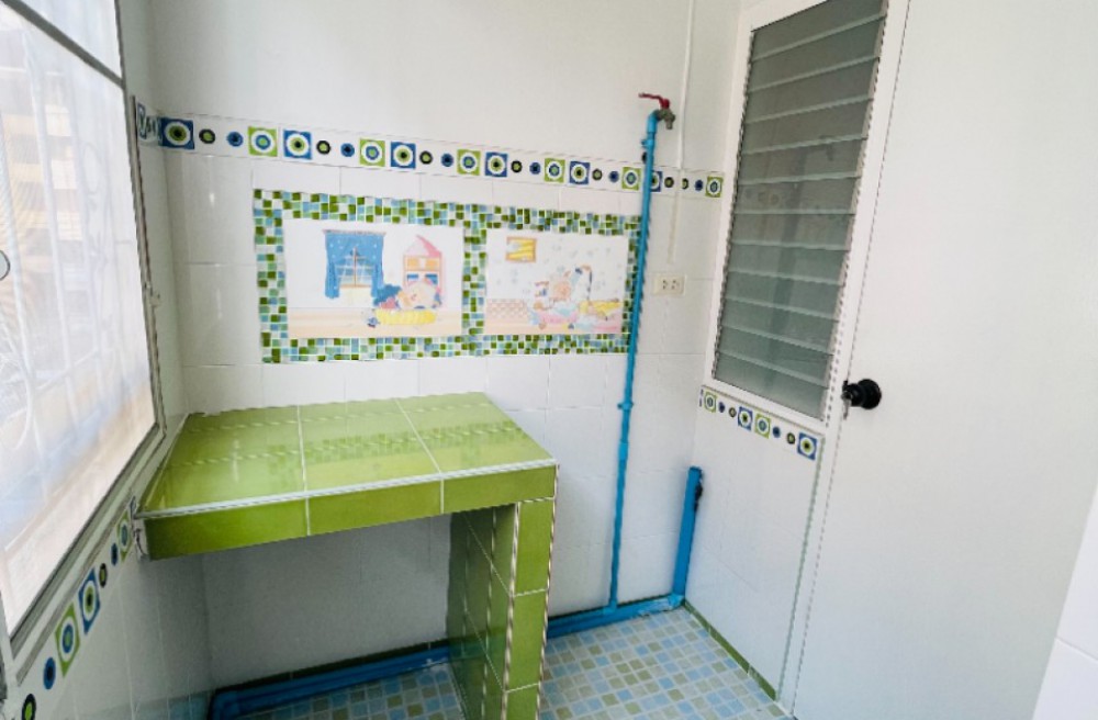 ปูกระเบื้องพื้นผนังระเบียงซักล้าง