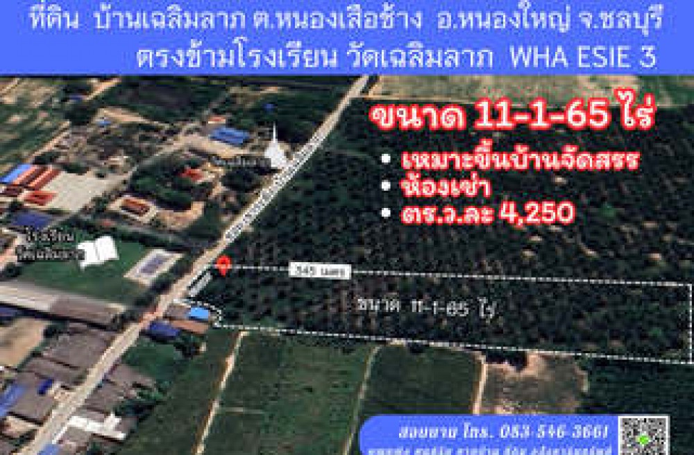 หนองใหญ่ , จังหวัดชลบุรีขายที่ดิน เหมาะสร้างโครงการบ้าน ห้องเช่า ใกล้นิคม WHA ESIE 3 หนองใหญ่ ชลบุรี
