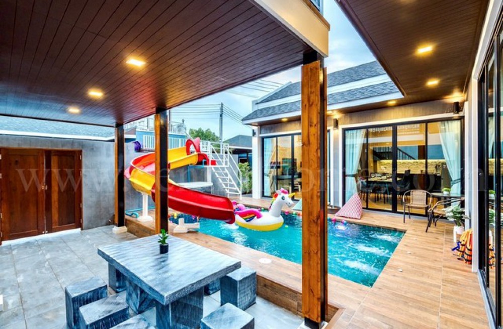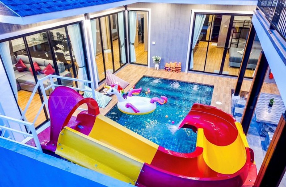 - พร้อมสระว่ายน้ำส่วนตัวระบบเกลือ และ สไลเดอร์ 7 เมตร ระบบน้ำวน