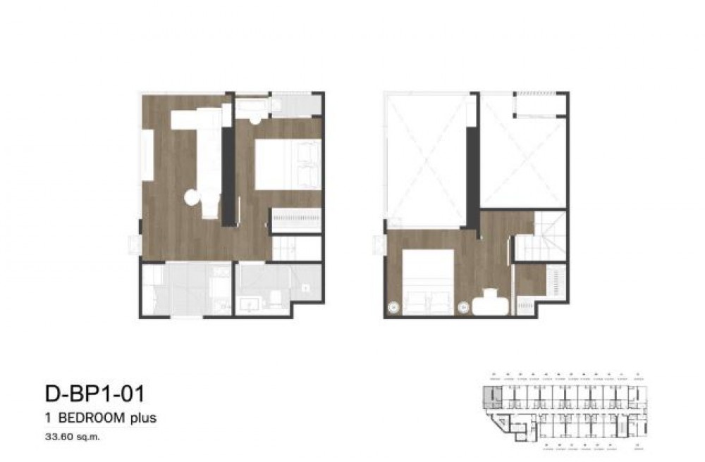 Type Duplex(49 ตรม.) 2 ห้องนอน 1 ห้องน้ำ ฝ้าเพดานสูง 4.2 ม.