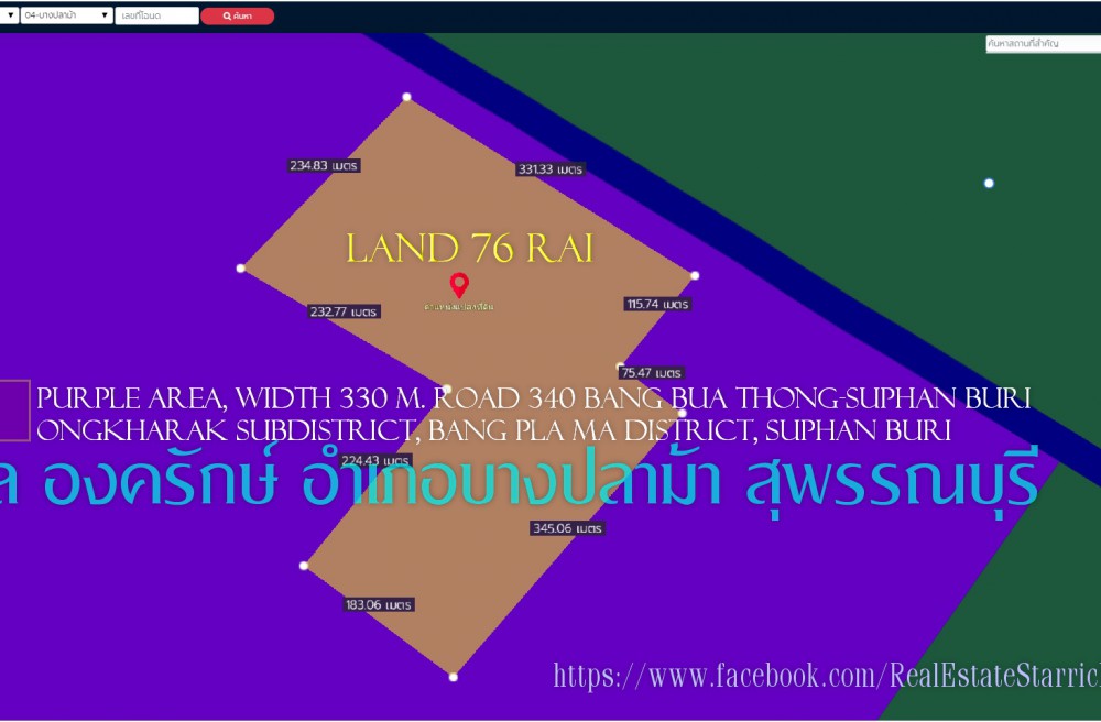 ✅ Land for sale, 76 rai. Purple zone (industrial/commercial), 330m frontage on Highway 340, Bang Bua Thong-Suphan Buri, KM 51. Ongkharak Subdistrict, Bang Pla Ma District, Suphan Buri. Near Bang Pla Ma Power Station. Price: 1.8 million baht per rai. Interested parties please contact Khun Sri 094 812 6456