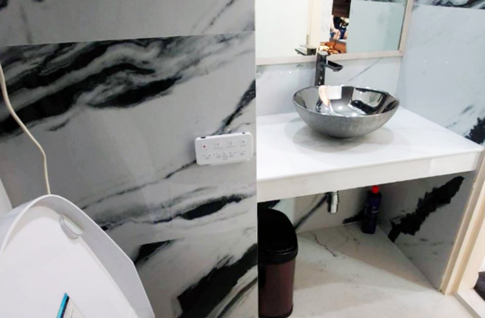 ภายในปูด้วยพื้นหินอ่อนลายสวยหรู เฟอร์นิเจอร์ทั้งห้อง