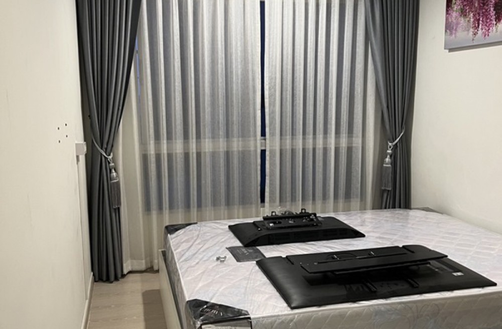 * ผ้าม่าน + ม่านโปร่งติดตั้งครบ