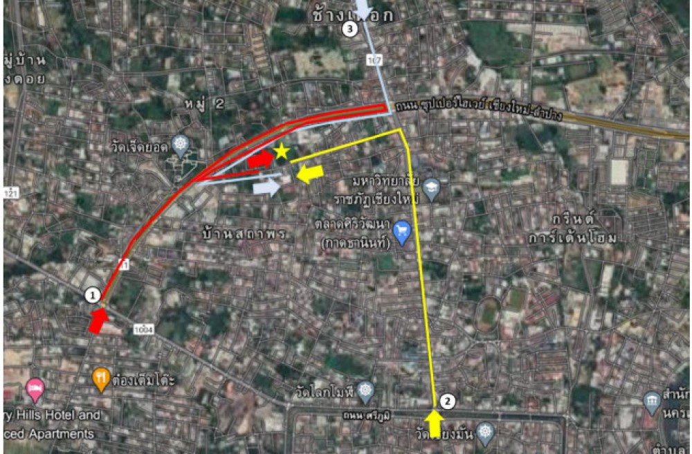 บรรยากาศดี เห็นวิวดอยสุเทพ ถนนกว้าง พื้นที่โล่ง มีรั้ว