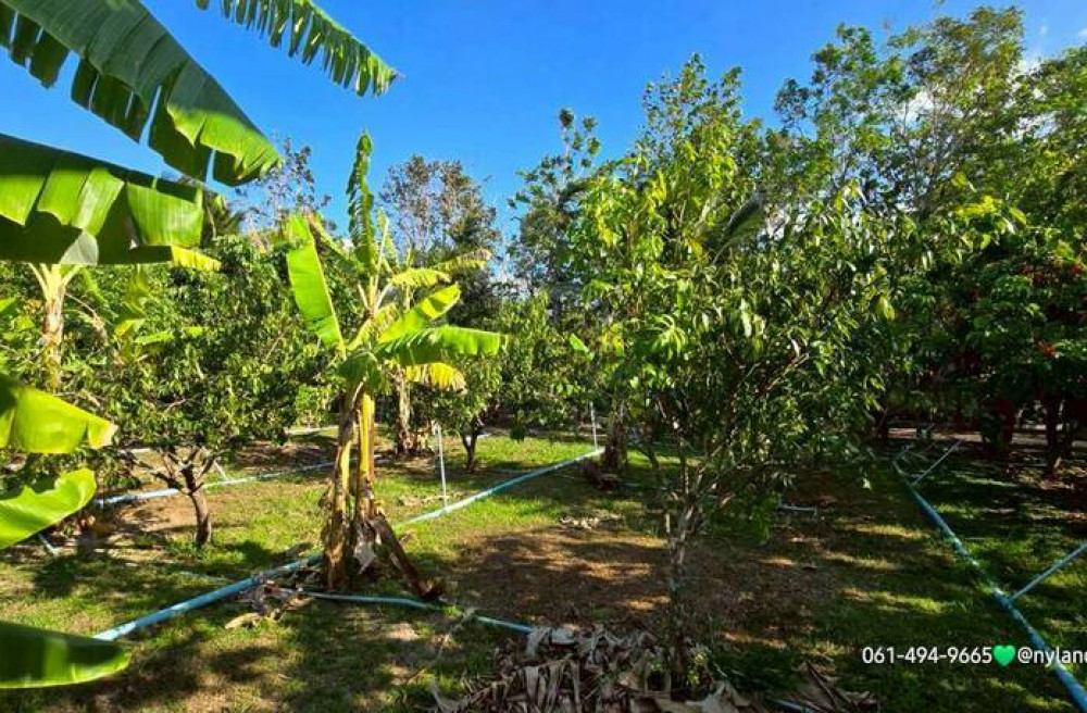 ภายในแปลงมีทั้งโซนที่ดินเปล่าสนามกว้างๆเตรียมพื้นที่ไว้ปลูกบ้านและสวนไม้ผล ที่อยู่บริเวณด้านหลัง บางอย่างให้ผลผลิตแล้ว