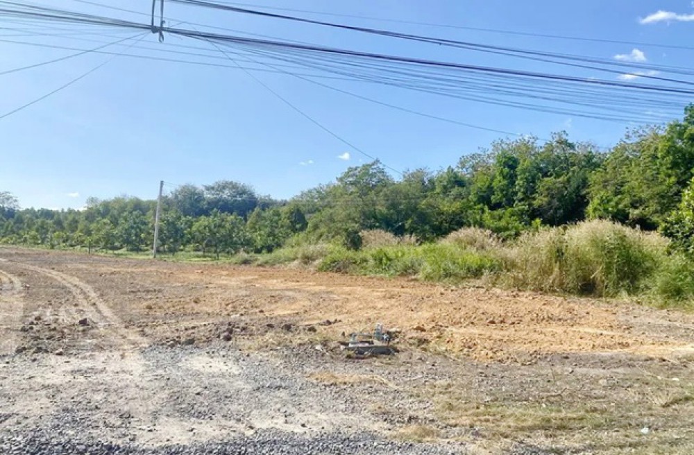 ที่ดินเปล่าเนื้อที่ 4 ไร่ หน้ากว้าง 30 เมตร ติดถนนลาดยางกว้าง 6 เมตร พร้อมไหล่ทาง มีไฟฟ้า น้ำประปา และแหล่งน้ำอ่างเก็บน้ำ เหมาะพัฒนาโครงการอุตสาหกรรม คลังสินค้า ลานโลจิสติกส์ หรือกิจการระยะยาว พื้นที่โล่ง