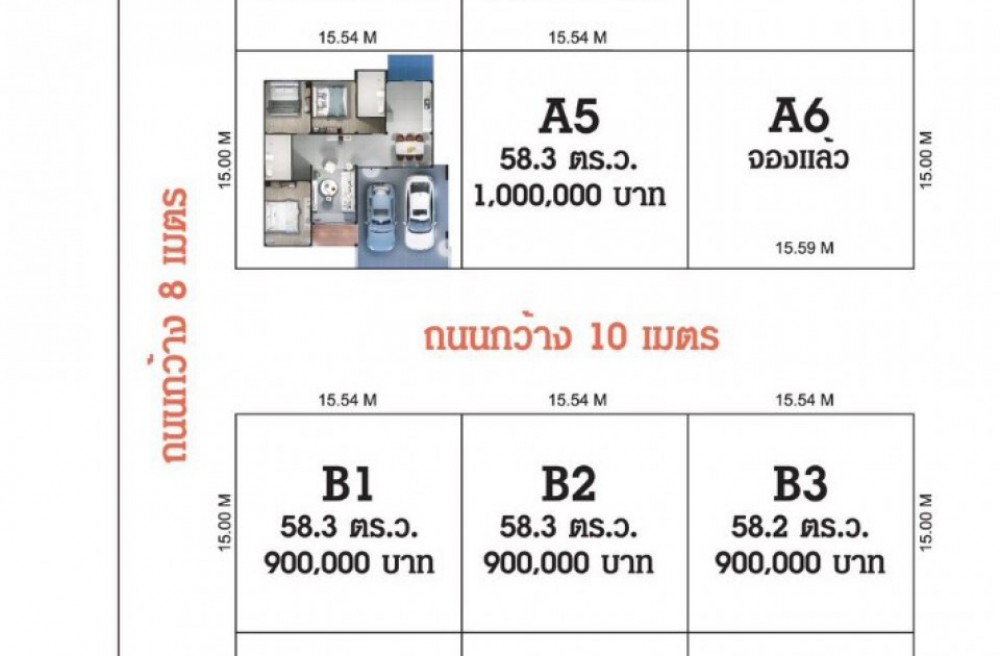 A5 เนื้อที่ 58.3 ตร.ว. ราคา 1,000,000 บาท