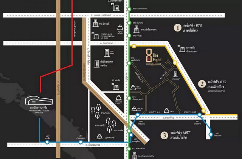 - สถานที่สำคัญใกล้เคียง CENTRAL LADPRAO UNION MALL CHATUJAK MARKET สวนจตุจักร รพ. เปาโลเกษตร รพ. วิภาวดี โรงเรียน หอวัง โรงเรียนนานาชาติเซนต์สตีเฟนส์