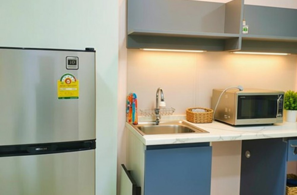 Easy access to food Bang Kapi Market 1.0 km. MRT Bang Kapi 200m. Happy Land Central Market 400m. Aspire Ladprao 113 MRT HuaMak 900m. Condo for rent 7th floor fully furnished 1 bed 1 bath Ladprao Bilingual International School 1.8 km. 25 sq.m. 8,999 B-M. Convenient transportation on Ladprao Road near Happy Land intersection.