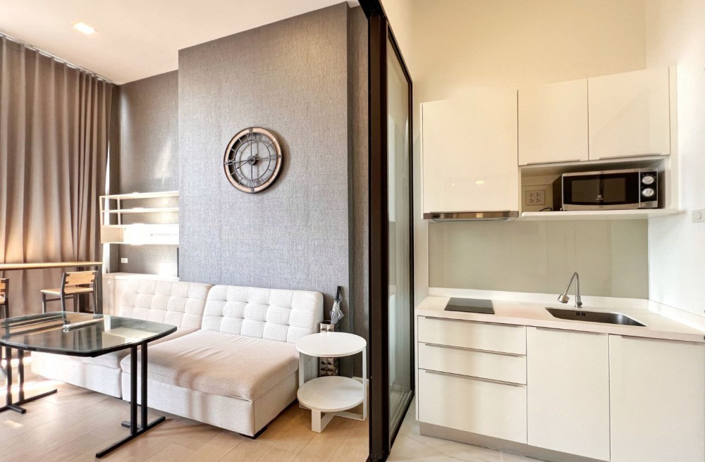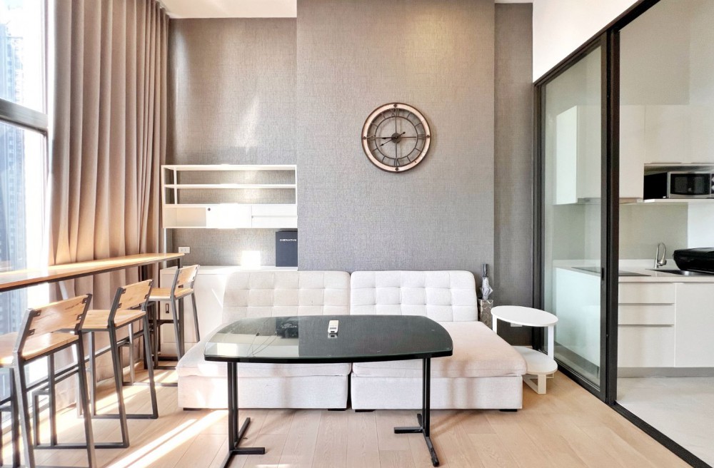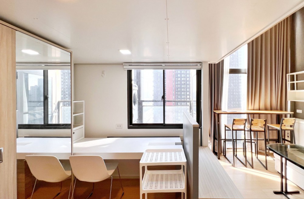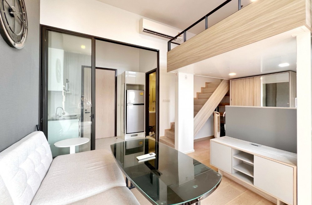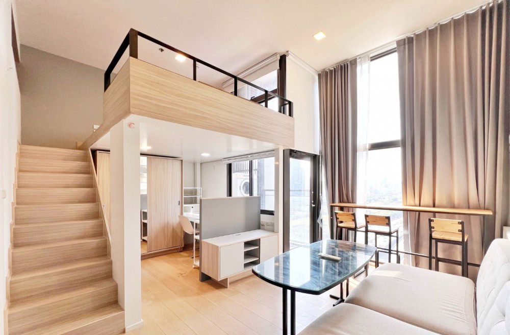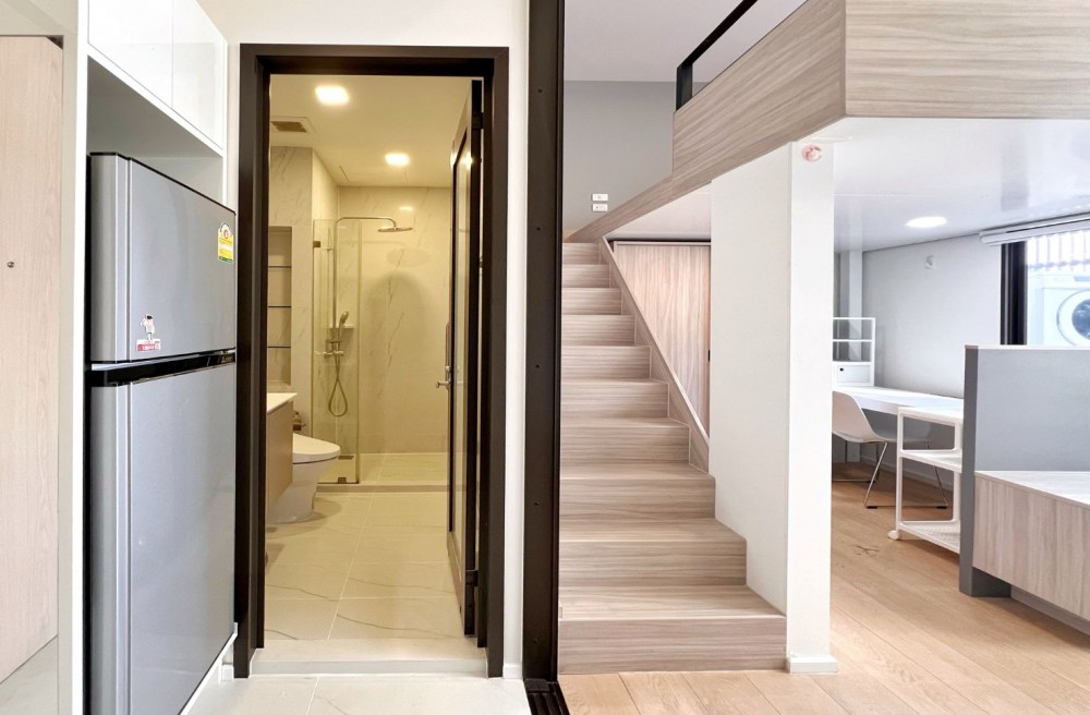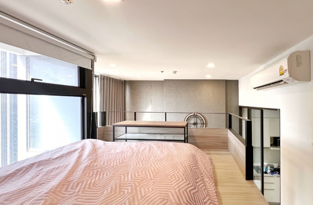 ห้องเพดานสูง 3.6 เมตร จัดพื้นที่ใช้สอยมีชั้นลอยเหมือนกับบ้าน 2 ชั้น Fully Furnished