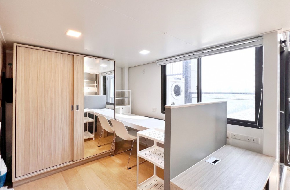 แบ่งสัดส่วนห้องนั่งเล่น พื้นที่ทำงาน และส่วนห้องน้ำ ได้อย่างเป็นสัดส่วน