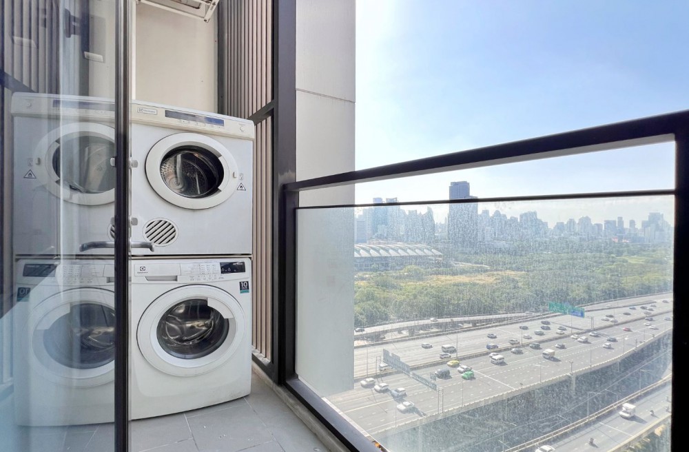 - เครื่องซักผ้า และ เครื่องอบผ้า แบบฝาหน้า ยี่ห้อ Electrolux และยังมีพื้นที่เหลือเพียงพอสำหรับตากผ้า
