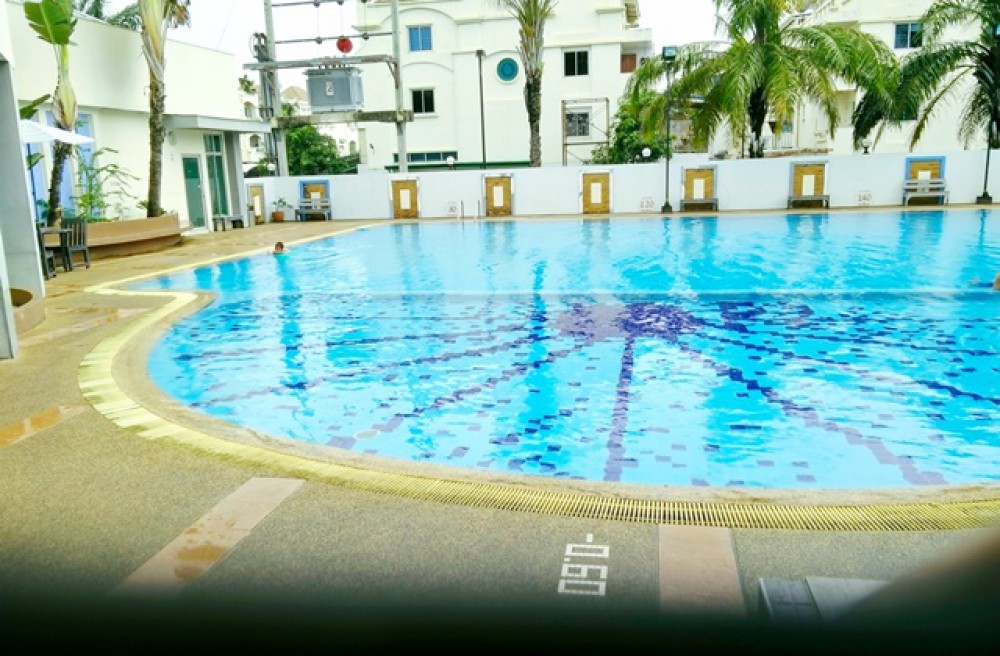 พัดลมติดผนัง 1 ตัว มีสระว่ายน้ำ