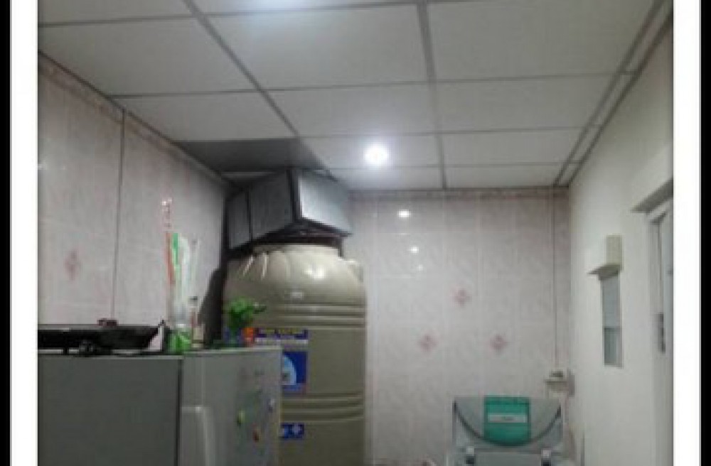 หลังบ้านต่อเติมห้องครัวพร้อมมีอ่างล้างจาน 2 อ่าง แบ่งโซนวางเครื่องซักผ้า