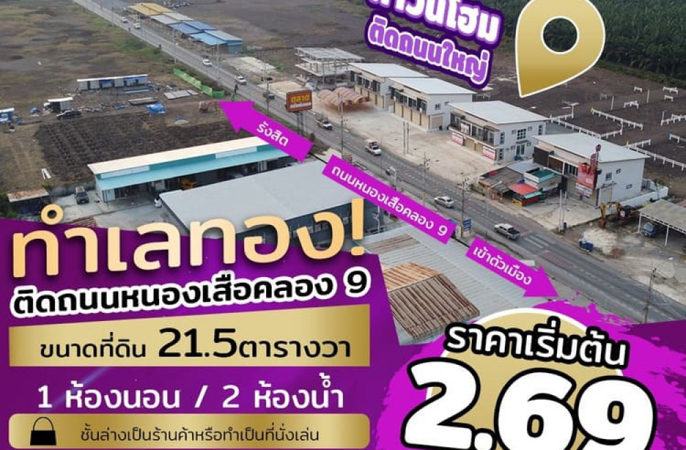 หนองเสือ , จังหวัดปทุมธานีขายทาวน์โฮม 2 ชั้น ติดถนนใหญ่ หนองเสือคลอง 9 ปทุมธานี สนใจติดต่อ 0823789999