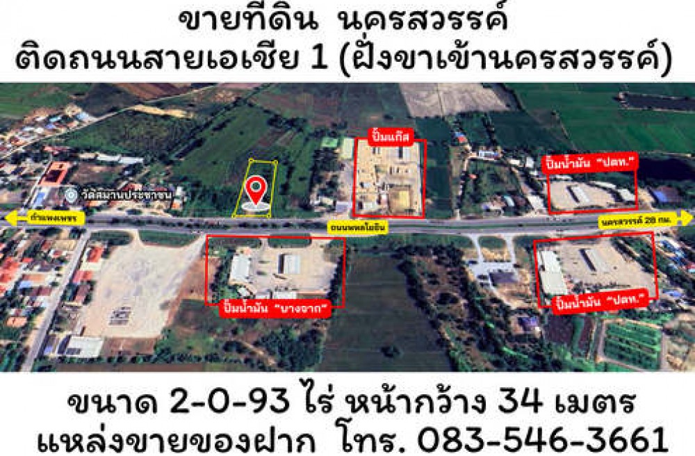 เมืองนครสวรรค์ , จังหวัดนครสวรรค์ขายที่ดิน ติดถนนพหลโยธิน แยกหนองกระโดน