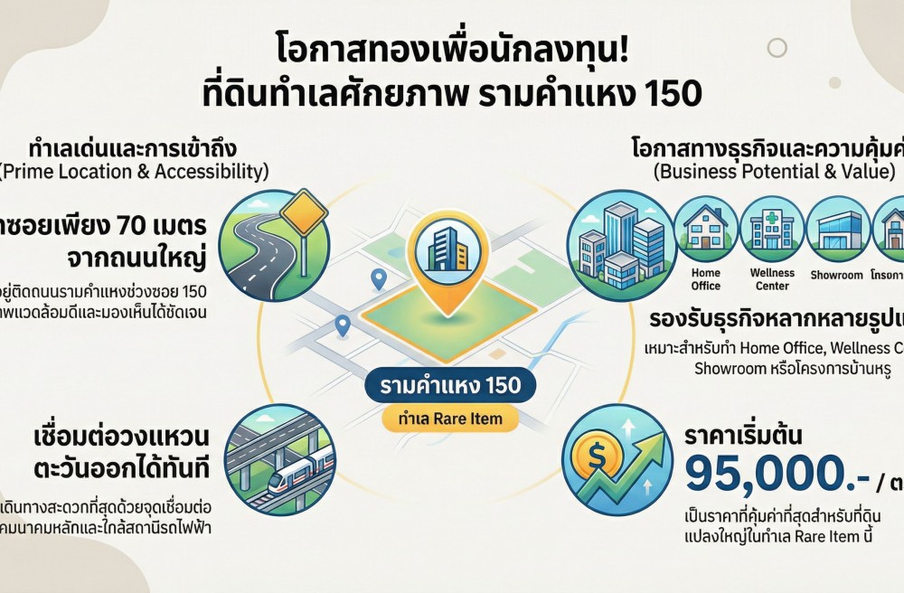 - ที่ดินลำเลรามคำแหงซอย 150 ตำแหน่งที่ดินห่างจากถนนรามคำแหงเพียง 70 เมตร