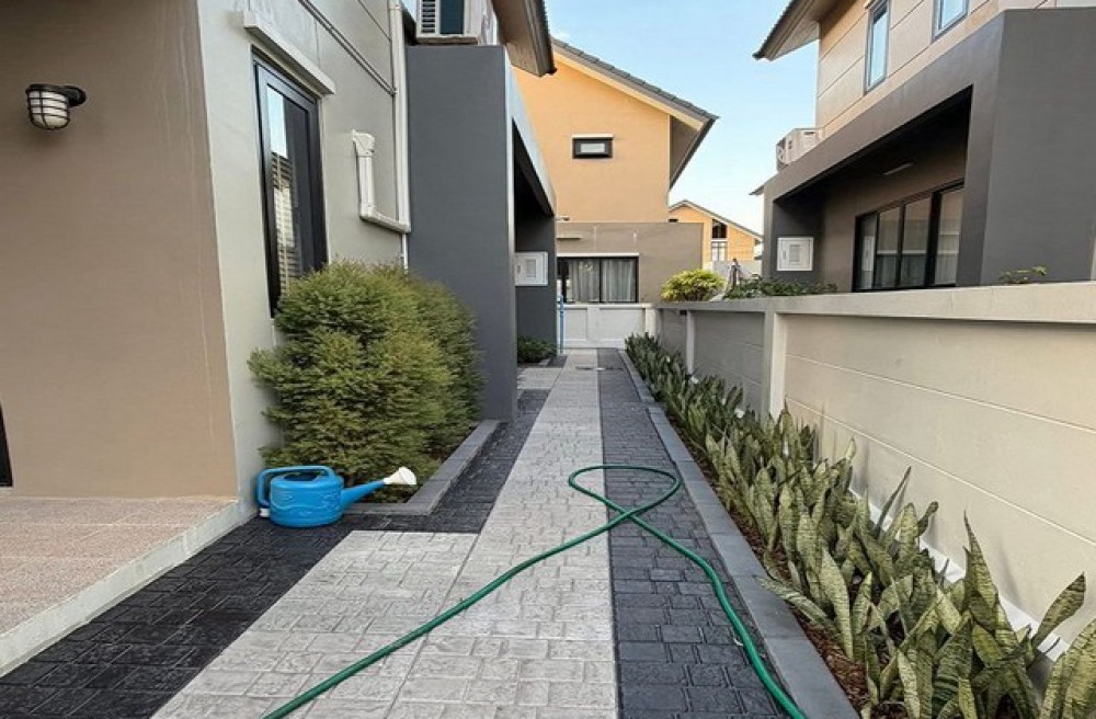 รอบบ้านลงสวน ปลูกต้นโอลีฟ ปูพื้นด้วยกระเบื้องคอนกรีตรอบบ้าน
