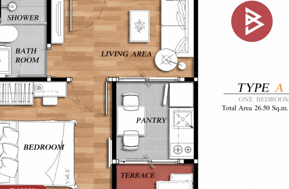พื้นที่ใช้สอย : 26.58 ตารางเมตร