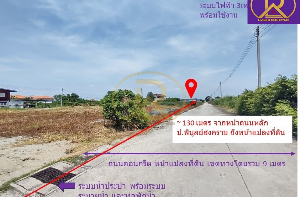 -ถนนคอนกรีตตลอดหน้าแปลงที่ดิน ขอบเขตโดยรวมกว้าง 9 เมตร