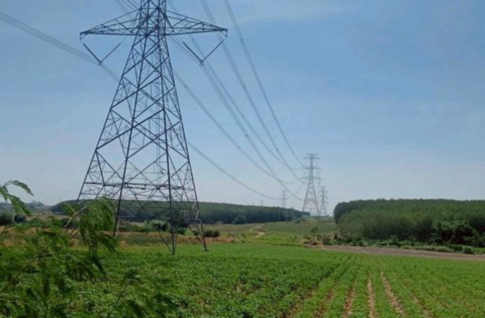 เเนวเสาไฟฟ้าเเรงสูงผ่านเเปลง