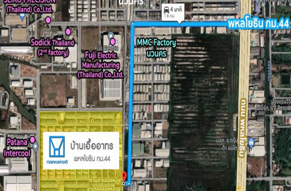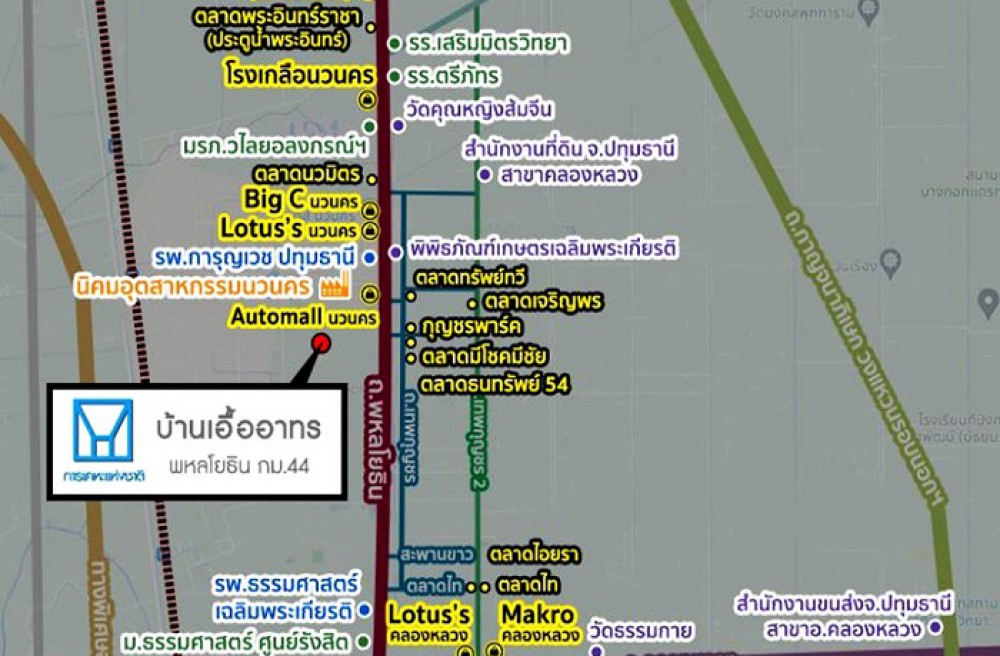 การเดินทาง เริ่มจาก ม.ธรรมศาสตร์ ศูนย์รังสิต ⇒ ถนนพหลโยธิน ⇒ ซอยพหลโยธิน กม.44 ⇒ บ้านเอื้ออาทร พหลโยธิน กม.44 *ใกล้สะพานลอยกลับรถ หน้ามิตซูฯ นวนคร