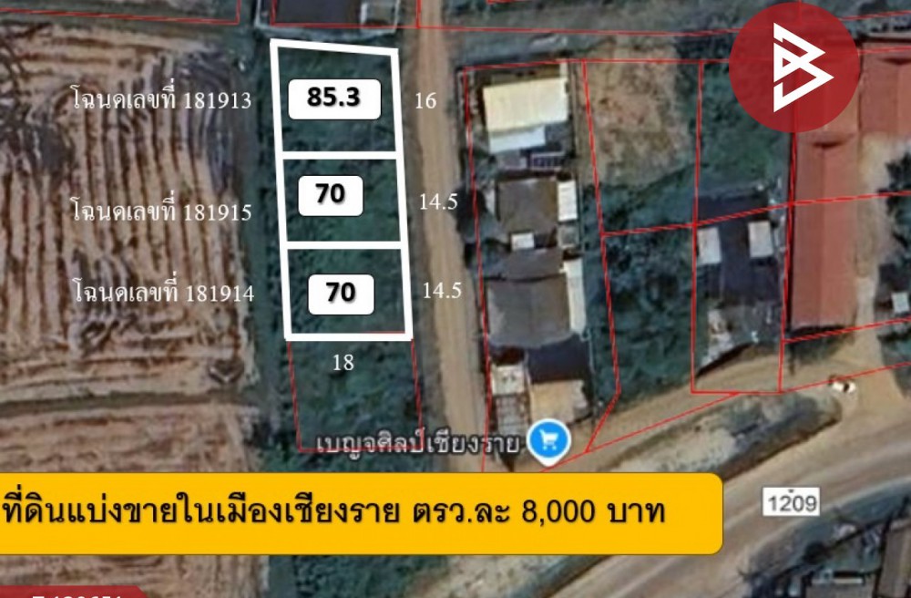 รายละเอียดเพิ่มเติม : ที่ดินแบ่งขายในเมืองเชียงราย จำนวน 3 แปลง ตรว.ละ 8,000 บาาท