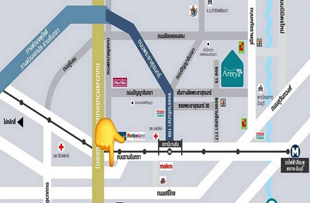 - ที่ดิน+สิ่งปลูกสร้าง ติดถนนรามอินทรา ตรงข้ามห้างแฟชั่นไอส์แลนด์