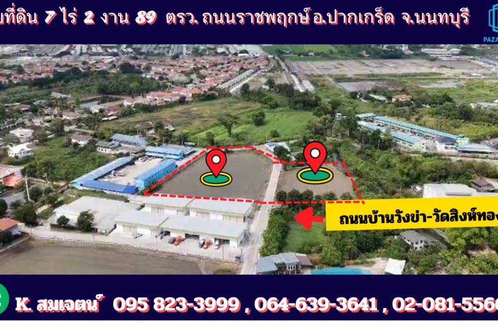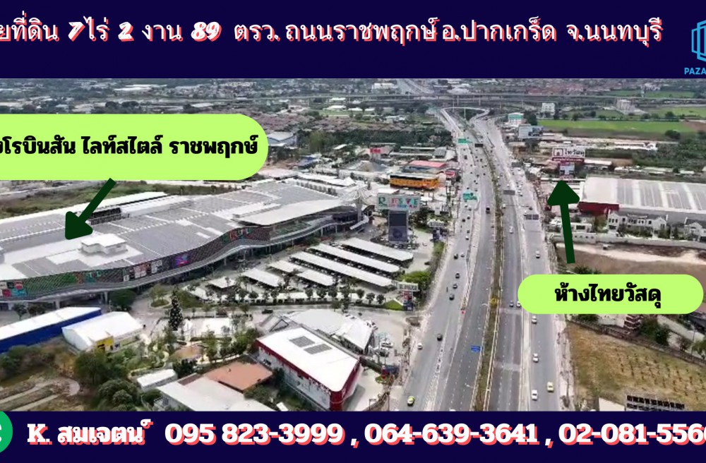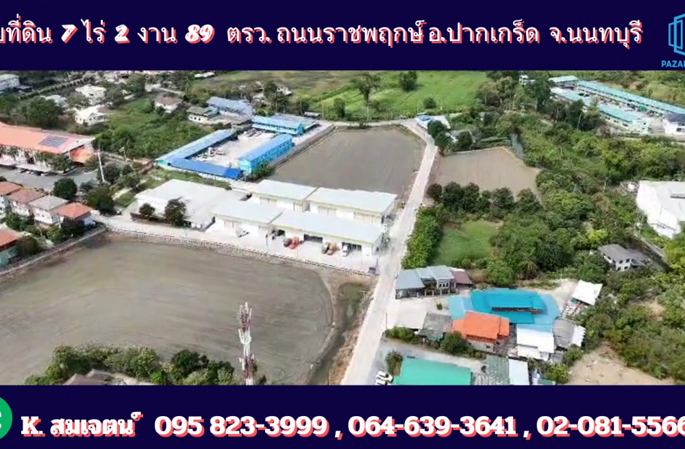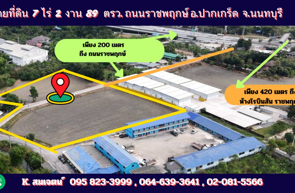 ปากเกร็ด , จังหวัดนนทบุรีPZ921 : ขายที่ดิน เนื้อที่ 7-2-89 ไร่ เยื้องห้างโรบินสัน ไลท์สไตล์ ราชพฤกษ์ เพียง 420 เมตร ห่างจากถนนราชพฤกษ์ เข้าซอยเพียง