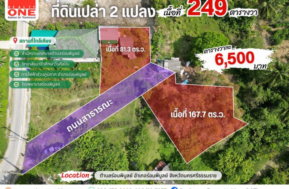ร่อนพิบูลย์ , จังหวัดนครศรีธรรมราชที่ดินเปล่า 2 เเปลง เนื้อที่ 249 ตร.ว. อ.ร่อนพิบูลย์