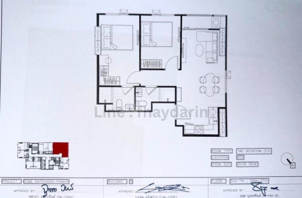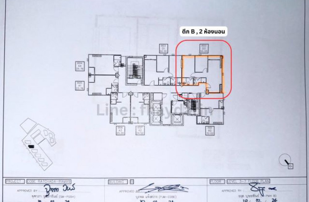 อาคาร B ชั้น 6 เลขที่ B0602 ขนาด 55.05 ตารางเมตร 2 ห้องนอน 2ห้องน้ำ (ห้องมุม) ใกล้ MRT ศูนย์วัฒนธรรม