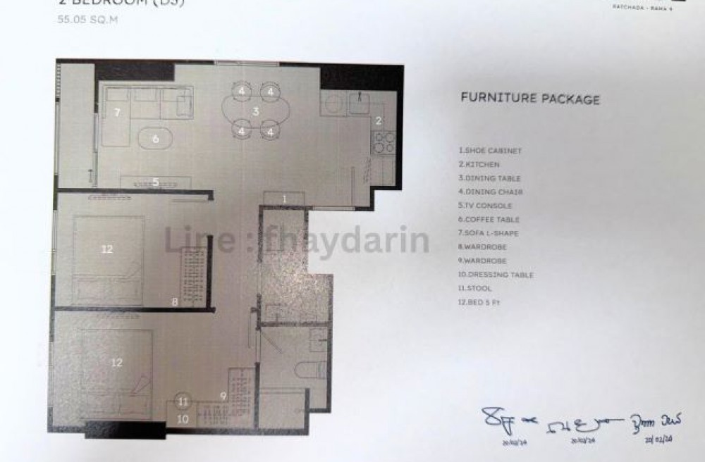 รูปแบบการขาย Fully Furnished ได้เฟอร์นิเจอร์ ได้แก่ SHOE CABINET , KITCHEN , DINING TABLE