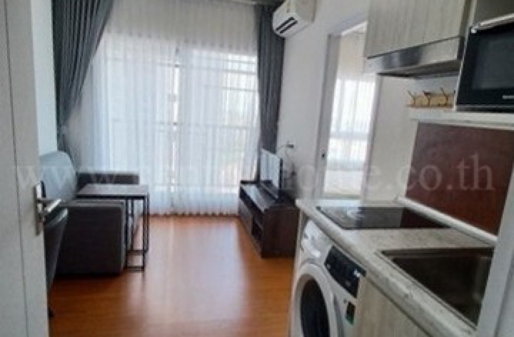- 1 ห้องนอน, 1 ห้องน้ำ, 1 ห้องนั่งเล่น พร้อมโซนครัวและระเบียง