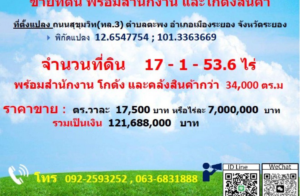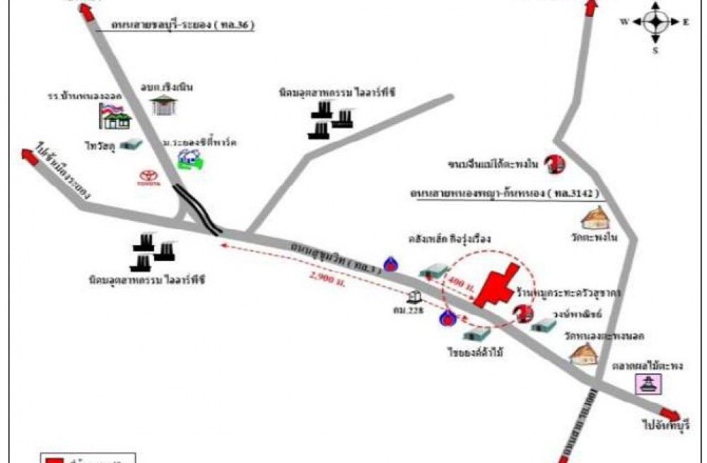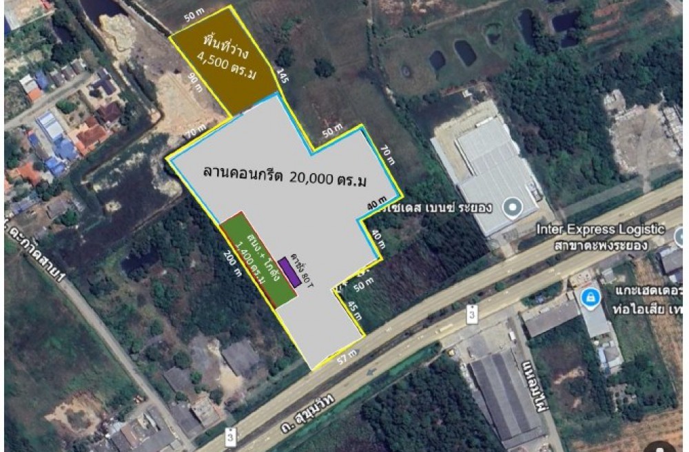 เมืองระยอง , จังหวัดระยองขายที่ดิน พร้อมสำนักงานและโกดังสินค้า 17 ไร่ 1 งาน 53.6 ตารางวา จังหวัดระยอง