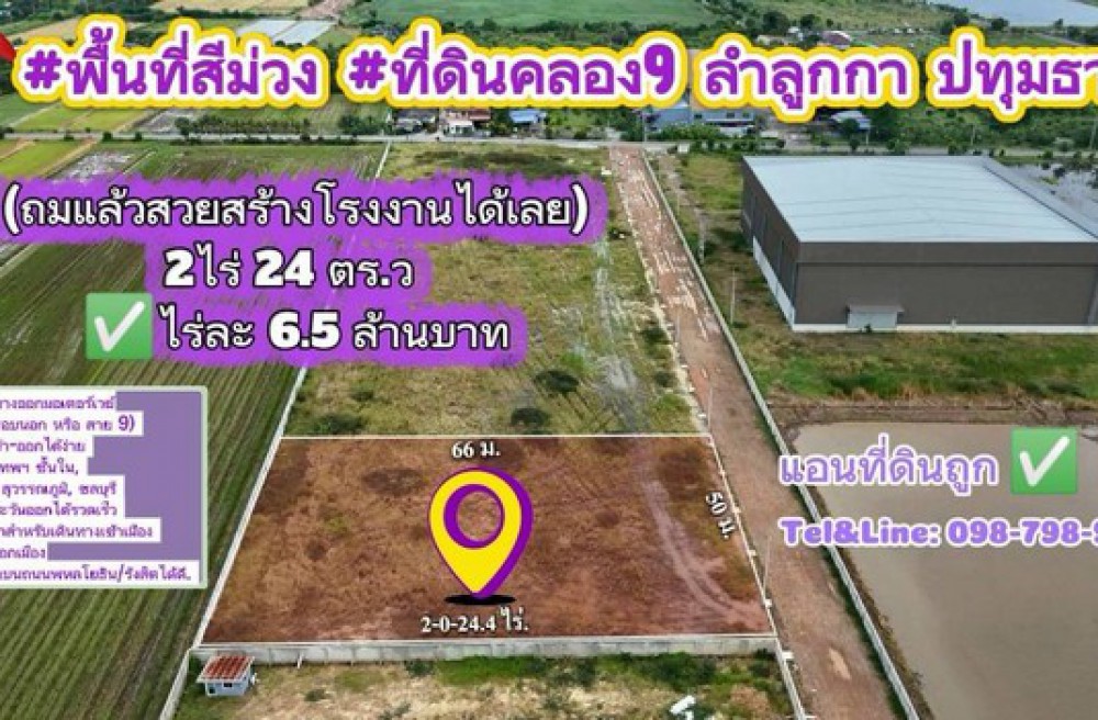 ลำลูกกา , จังหวัดปทุมธานี#พื้นที่สีม่วง #ที่ดินคลอง9 ลำลูกกา ปทุมธานี (ถมแล้วสวยสร้างโรงงานได้เลย)