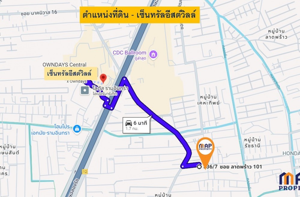 - ใกล้รถไฟฟ้าสายสีเหลือง ระยะประมาณ 2.5 กม.(สถานีมหาดไทย/สถานีลาดพร้าว 83)