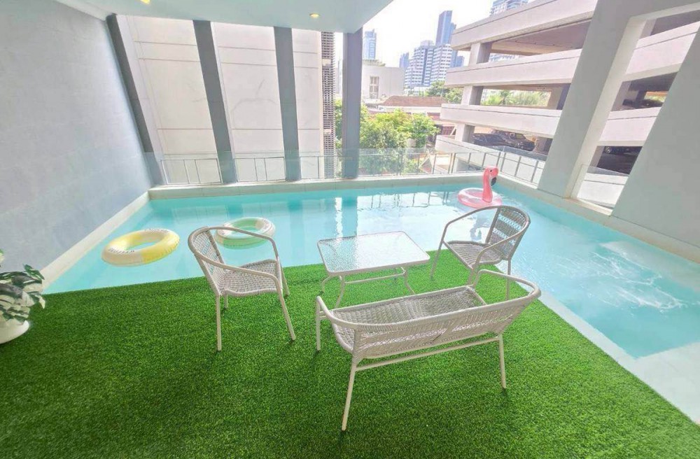 - Facilities ครบ: สระว่ายน้ำในร่ม (Indoor Pool), ดาดฟ้า (Rooftop), ระเบียงใหญ่ (Terrace), เตียง, เครื่องใช้ไฟฟ้า