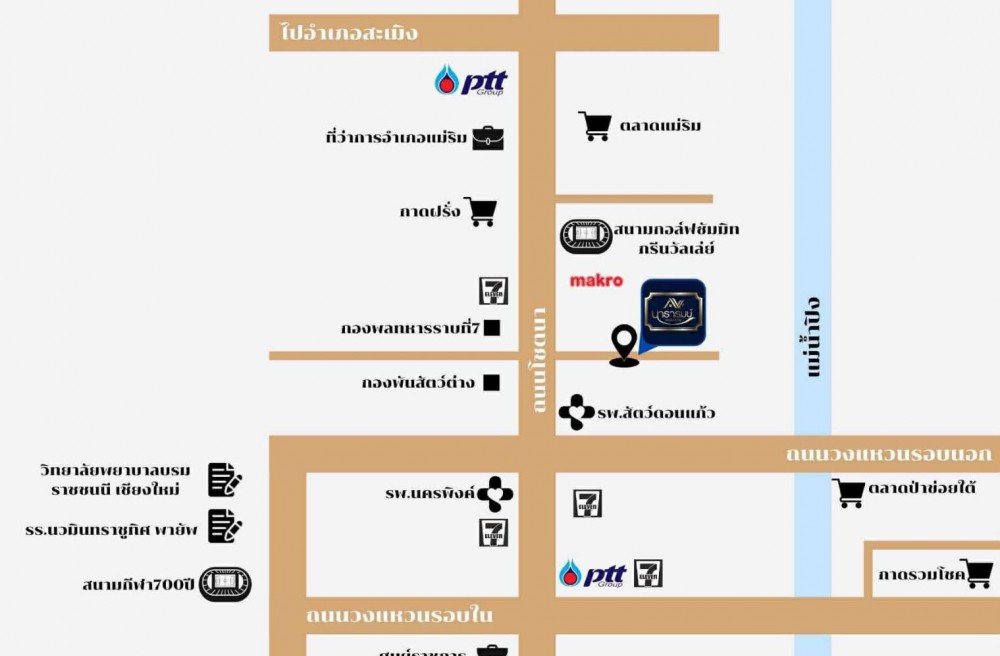 • ใกล้ห้างแม็คโคร ใกล้กาดฝรั่งใหม่ เซเว่น